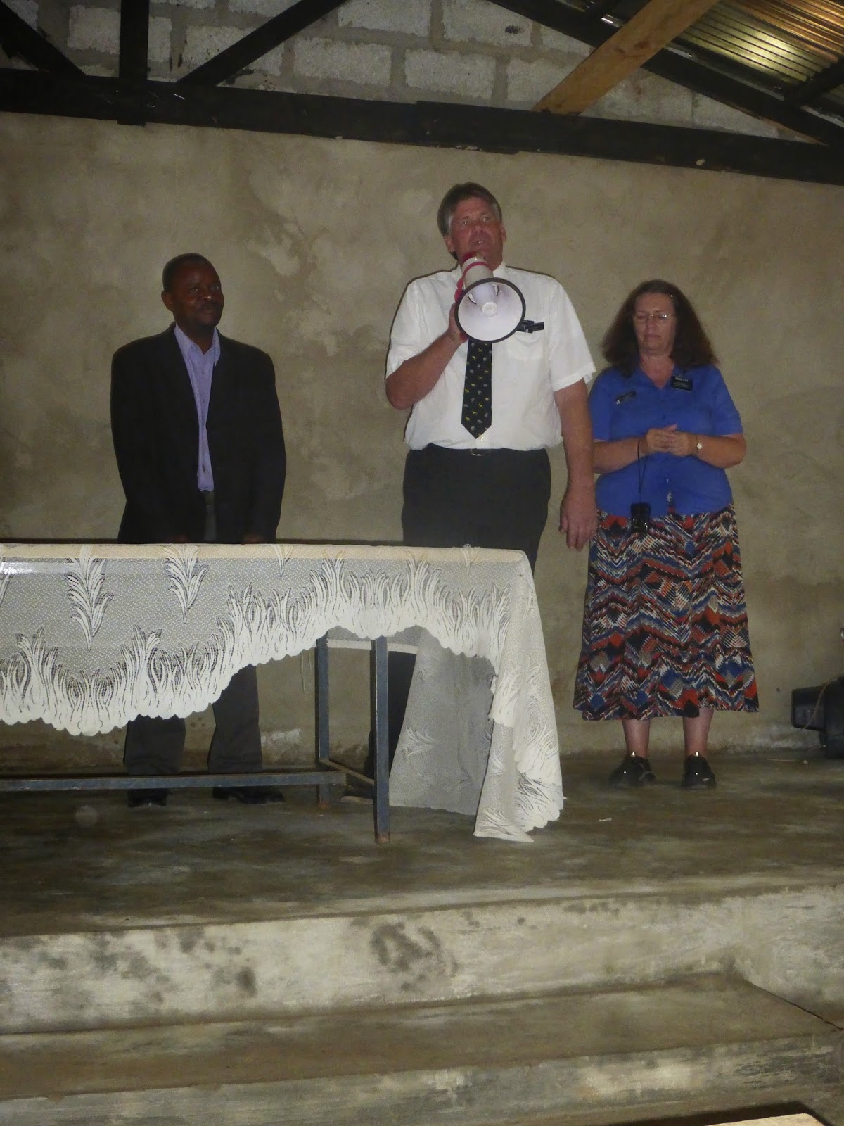 Frank wanted to use the bull horn so Elder Lyle used it too to tell the kids to take pride in their school.